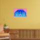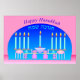 En Hanukkah-lampa med geometriska former och ljust grönt ljus