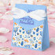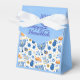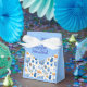 En blå Hanukkah Tack Party Tält Boxes Designad med Leksak Dreidels och Menorah