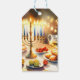 Vattenfärgillustration för Hanukkah. Ett vackert arrangerat bord-set för ett festligt firande, med en traditionell menorah med tända ljus. Mjuk, varm lampa, medan helgdag tillför en gnutta glädje. Varma ljus som skapar en mysigt atmosfär som inbjuder till det.