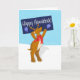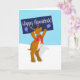 Lycklig Hanukkah-hälsningskort med en lycklig-renare som har en Lycklig Hanukkah-skylt. Hälsning och "namnteckning" på insidan kan vara personlig till kostym din personlighet. Det här kortet är underbart för barn eller någon i familjen att skicka. Perfekt för lärare. Barn kan även skicka detta till sina Bubbe & Zadye, moster eller uncles.