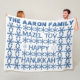 Lycklig Hanukkah-stjärnan av David Menorah Snöflingor Mönster Blue and White Elegant Fleece Blanket Unic Personlig Gift Jewish Helgdag Hebrew Festival of Light, Add Family Namn eller Din text