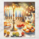 Vattenfärgillustration för Hanukkah. Ett vackert arrangerat bord-set för ett festligt firande, med en traditionell menorah med tända ljus. Mjuk, varm lampa, medan helgdag tillför en gnutta glädje. Varma ljus som skapar en mysigt atmosfär som inbjuder till det.