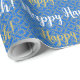 Blå, baby blue och vita nyanser med ett judiskt religionstema för presentemballering. Lycklig Hanukkah White, Blue och Guld Wrapping Papper.