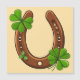 En brun hästsko prydd med livfulla gröna shamrocks, symboliserar tur, skydd och irländsk charm. Perfekt för St. Patrick's Day, tur-teman och festlig grönska i dekorativa eller marknadsföringsdesign.