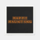 "Lycklig Haunting" prydnadstext i vibrant orange brev, en humoristisk och sofistikerad design för en halloween
