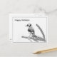 Det här är ett vykort från lycklig helgdag med skissen av en blåejay på gräs träd med snö på vintern. Den här bilden togs av Debbie Quick of Debs Kreativ Bilder. Om du vill se fler bilder från Debbie kan du läsa hennes webbplats på: www.debscreativeimages.com
