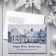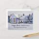 Det här vackra gratulationskortet för husägare är perfekt för ett fastighetsbolag som ligger i norr. Vacker vit snö täcker träden och huset på det här vinterfotot. En fastighetsmäklare kan anpassa framsidan och baksidan med sin företagsinformation och kontaktuppgifter.