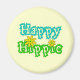 En hippie-textdesign i coola i grönt, blått och gult färg som säger Lycklig Hippie.