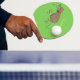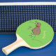 Lycklig-hoppande kiwi med tecknad för buggtid pingisracket