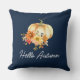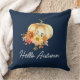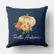 Lycklig Hösten, fallskript blommigt, vit skript marin blått dekorativ kudde