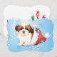 Fira julhelgen med en söt Shih Tzu-valp i en julhatt mitt i snöflingor med ord, Lycklig Howlidays på baksidan! Underbar för Shih Tzu-älskande familj och vänner.