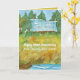 Önska dina kunder en årsdag i lycklig med det här kortet som innehåller ett strandhus på ett backe täckt av gräs som blåser i havsbrisen med mild vågar som berör stranden som illustreras med bläck och vattenfärg. På insidan finns en koordinerande nyans av senapsfärg med vit gult som du kan redigera för att passa dina behov.