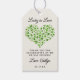 Fira med stil med dessa söta, moderna och mycket trendiga "Lycklig i kärlek"-presentkort för tack till bröllopsgästerna. Designen har ett grönt shamrock-vattenfärgshjärta med lättanpassad typsnittsformulering som är perfekt för en St. Patrick's day- eller irländsk tematiskt bröllopsfirande. Matchande artiklar finns i kollektionen.