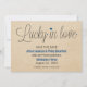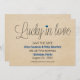 Rolig och charmig Lucky in Love Spara datum-anmälan med en fantasifull typografidesign kompletterad med små kungliga blå hjärtan och en falsk texturerad pappersbakgrund. Denna eleganta spara-datum-inbjudan är perfekt för att tillkännage din bröllop med modern stil! Lätt att anpassa, lägg bara till detaljerna om din speciella dag i de angivna fälten. Klicka på "Anpassa"-knappen för att hitta ytterligare anpassningsalternativ.