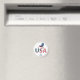 Utforma ett magneter med en stiliserad örn med utsträckt vingar, omgiven av stjärnor.