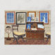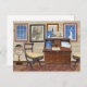 En scen i en studie tittar på sidan av vintagen Frihetsgudinnan visnings på väggen, antika möbler - inklusive en jordklocka - och på skrivbordet, några kort som är relaterade till den fjärde juli som antingen har tagits emot eller som är beredda att förmedla bästa önskemål.