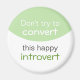 Det är inget fel med att bli inåtvänd. Människor i ge som vill göra dig mer utåtvänd med en slogan som lyder: "Försök inte konvertera lycklig-inåtvändningen"