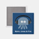 Mörk blått magnet med en söt blå maneter med hörlurar och ord "Lycklig, Joyous & Free" Om du vill ändra bakgrunden klickar du bara på färg på knappen "Anpassa den". Text är också anpassade - mycket typsnitt och färg att välja mellan. Besök min Sober Princess-butik för unika gåvor och roligtar till människor som vill hämta sig från alkohol och narkotikamissbruk - och presenter med andlig/inspirationsljud. Alla illustrationer som skapas av en alkoholhaltig vid återvinning.