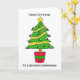 En roligt Julgran täckte i söta tecknader och åtföljdes av ord "Lycklig jul till en underbar biodlare".