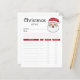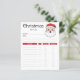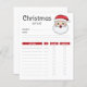 Hjälpsam checklista för planering av julklappar för vänner och närstående. Utformningen har Desteis ursprungliga tecknad som illustrerar ett huvud för lycklig Jultomten. Tomten bär en röd och vit hatt, han har ett fluffigt vitt skägg och hans uttryck ansikte är glatt. Det översta står: "julklappslista" och sedan finns det utrymme för mottagarens namn och vissa anteckningar. Det finns också avsnitt för presentidéer, prisa, oavsett om presenten har köpts eller inte och om presenten har slagits in.