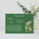 Tacka dina gäster med stil på en Bröllopsfest med lyckliga shamrockar på St. Patrick's Day. Illustrationen har "Lycklig kärlek" med gröna, guldskimrande shamrockar - 4-bladiga klöver. Baksidan har en matchande design. Texten använder modern kalligrafi och är lätt att anpassa.