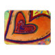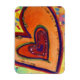Ett litet lila hjärta är inneslutet av ett rött hjärta inom orangens hjärtan. Hjärtan skisseras i grönt, lila och rött. Vattenfärgsbakgrunden är en mjuk gult med färgstarka konfektpunkter. Ett ljus lagrar i guld och det röda glitter spårar kant i hjärtat. Måla detaljer från "Lycklig"---inspirationen i Ord. Anpassa den här kärlek-hjärtan-konsthantmagneten med egen text och bilder för att göra personlig speciella kärlek-magnetgåvor eller party favors för bröllop, helgdagar eller någon annan speciell händelse! Vinsterna från denna försäljning stöder den icke-vinstdrivande verksamheten 501(c)3 DonnaBellas Änglar.