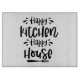 Ett kök som är nödvändigt och en kocks bästa vän. Den här glasskivan är perfekten som tillkommer till kockköket. Använda den för att tillsätta ingredienser, ta kött, skära ost eller skiva frukt. Det handritade citatet "Lycklig Kitchen Lycklig House" gör detta till en underbar gåva till maten i ditt liv!