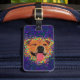 Ansikte för tjuren för gropen för färgrik popkonst bet lyckligt, a uppnosigt med en blinkning, på en bakgrund av lilor & blått varvade penseldrag. Tillgängligt på en variation av produkter på min Zazzle shoppa, zazzle.com/DoggyStyleStudio.