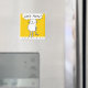 Roligt lycklig kattmagnet. Kattägargåva. Katten - Tecknad Katt står och ler på gultens bakgrund. Katt älskarpresentidé.
