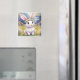 Söt lilla bunny med daisy krona njöt en vacker dag på gräset.