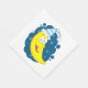 En blå och vit hatt i lycklig gult måne ansikte. Den här designen ser ut att vara effektiv på dessa Pappra servetter