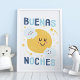God natt! Häng denna glada barnkammarens konst i ditt nyfödda barns eller barnets rum. Nattens måne, moln och stjärnor kommer att lysa klart i alla tvåspråkiga och spansktalande hem.