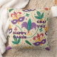Låt bran rulla med den häpnadsväckande grönten, lilan och guld Mardi Gras hemdekanter! En Mardi Gras-kudde med Tjock tisdag firande festive färg. Utformningen har en unik och öga-fångstinställning för fjädrar, masker och pärlor i en blek kräm-bakdel. Baksidan av kudden har ett liknande mönster. Du kan ändra texten "Lycklig Mardi Gras Y'All" med personlighetsknappen. .