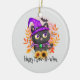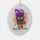 Lycklig Meow-o-ween-Black Witch Cat Julgransprydnad Keramik