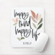 Med den här moderna designen kan du tänja vibes för din arbetsyta med enkel löv i en blandning av olika svarta skript av pastel färger och snyggt, Lycklig Mind Lycklig Life på en vit bakgrund som kan ändras till ett annat färg om du så önskar. Anpassa enkelt med ditt namn.