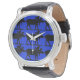 Upprepa mönster i svart älva på royalets blå bakgrund, som visas här på en klocka ansikte.