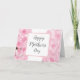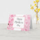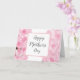 ett sött hälsning till mamma i ditt liv. På kortets framsida finns en snygg illustration av rosa blommor med hälsning "Lycklig Mor's Day". Du kan anpassa hälsning och text inuti. Rosa blommor inspirerades av körsbärsprodukter och har en vattenfärgsliknande abstrakt på en mörk brun gren. Utformning av Ms_Jade. © 2021 Ms_Jade