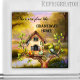 Magnet med en målning av ett landskap med fågelhus och en baby-fågel med morméfågel. En vacker konstnärlig magnet för Mors dag eller hennes födelsedag.