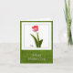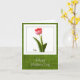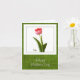 Lycklig Mors dag - One Rosa Tulip: Stängning av blommigten, naturfotografi av en rosa tulpanfläck mot isolerad mot vit bakgrund och ett digitalt ram. Fotot är över en grönt med en sniljbakgrund med texten "Tulip". Ord, "Lycklig Mors dag", skrivet på framsidan och insidan. Du kan ändra texten på framsidan och lägga till meddelandet på insidan med den enkla mallen.