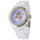 Monogrammat för att infoga din egen bild och ändra texten. Lycklig Mors dag - För min fru med söt mamma och son med blå bakgrund. Rhinestone White Enamel klocka.