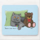 Cute grått-katt med leksak och nalle som önskar sin katt Mamma vid Lycklig Mors dag. Lycklig Mors dag från katten