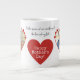 Mugg är ett tecken på kärlek och uppskattning med ett pulserande rött hjärta i kärlek i centrum, försett med ord "Lycklig Mors dag". Ovanför är en ömtålig hyllning: "Till drottningen av vårt slott och kärlek i mitt liv". värdefulla minnen genom att infoga två omhuldade foton i de medföljande kärlek-hjärtutrymmena, skapar mugg som en personlig för sakens skull