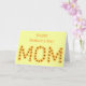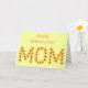 Berätta för din mamma hur mycket hon elak till dig med det här hälsningskortet för anpassningsbar åt henne. Ord, MAMMA, är skrivet på en arrangemang av gult solblommor, av CherylsArt. Det finns en inspirationslinje inuti som du kan använda eller anpassa meddelandet med ditt eget ord på de tillhandahållna mallarna. Tack för att du shoppade CherylsArt på Zazzle.