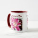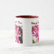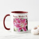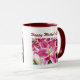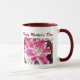 Underbar gåva till Mors dag är mugg med en stängning av en magenta-stjärnblomma från Lily som tagits från en boquet.