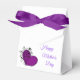 En liten presentlåda i påsen stil med söt lila överst, "lycklig Mors dag" och ett vackert lila i rullan vid grund. (Mammor har någon gång förtjänat ett lila hjärta!) På baksidan står "I Kärlek You". Det kan användas för en liten stund efter middagen, en känslig gåva av smycken eller många andra gåvor.