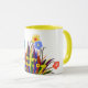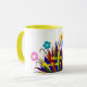 Mors dag skrivet i en solig gult färg med en närliggande söt blommigt arrangemang med färgblommor och ljusa färgad fjädrade lämnor inklusive rosa, blått, gult, grönt, teal, orange. Snygg gåva till Mors dag för Mamma, mormor, Moster etc. Klicka på Anpassa om du vill lägga till speciell text på Mugg sida. Originalgrafik teckning av TamiraZDesigns. Besök min butik för matchande tillbehör och fler originalartiklar på: www.zazzle.com/tamirazdesigns*