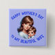 Monogrammat för att infoga din egen bild och ändra texten. Lycklig Mors dag - För min fru med söt mamma och son med blå bakgrund. Badge.
