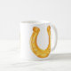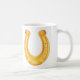 Lycklig guld- hästsko för bra förmögenhet, pengartur, framgång och lycka; tvåsidigt tryck. Du kan också få denna design på annan stilar liksom frostat och travel mug. Original- konstverk av M. Chaume. Lyckliga välsignelser!