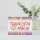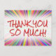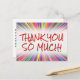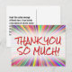 Den här lycklig, lekande tack-du-vykortsdesignen, innehåller meddelandet "TACK SO MUCH!" på framsidan, tillsammans med ett anpassade på baksidan. Det skulle kunna användas för att visa uppskattning för någon som har gjort ett speciellt dåd.