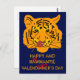 Denna unika och roliga postkort har en bild av en söt tiger - ett vilt stort kattdjur - som tittar rakt på dig och läcker läpparna på ett aptitligt sätt. Texten "HAPPY AND RAWMANTIC VALENDINNER'S DAY" är placerad under bilden. Det blev några bläckfläckar, men de korrigerades lyckligtvis. Bakgrunden har en mörk marinblå färg. Några fotspår av en stor eller liten katt samt texten "The year of the tiger 2022" finns på baksidan av kortet. Bara för skojs skull, för att skratta och för en rolig Alla hjärtans dag-hälsning. Denna design är helt anpassningsbar. Du kan byta bilder och du kan ändra eller ta bort alla malltexter oberoende av varandra. Om du behöver ändra bakgrundsfärgen, typsnitt, storlek, färg på typsnittet eller lägga till fler element i kortet, använd gärna knappen "REDIG